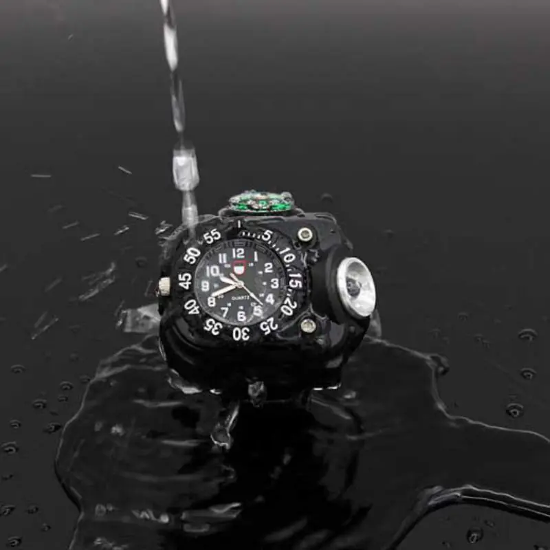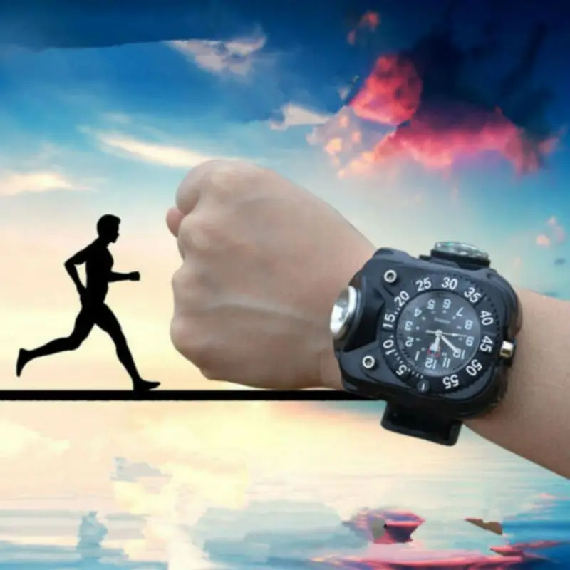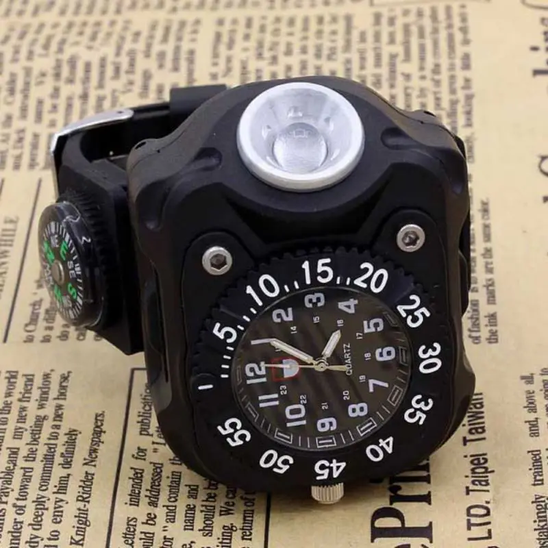 Outdoor Waterproof 3-in-1 Wrist Watch Torch Lights With Compass LED Super Bright IPX7 Flashlight Fo