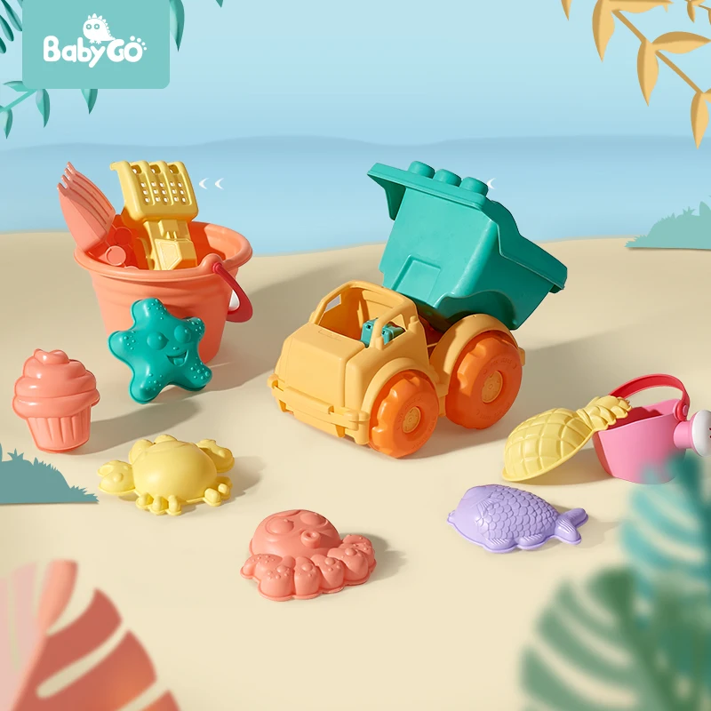 BabyGo Soft Silicone Beach Toy For Children Bucket Tool Rake Hourglass Outdoor Play Sand Tool Set K